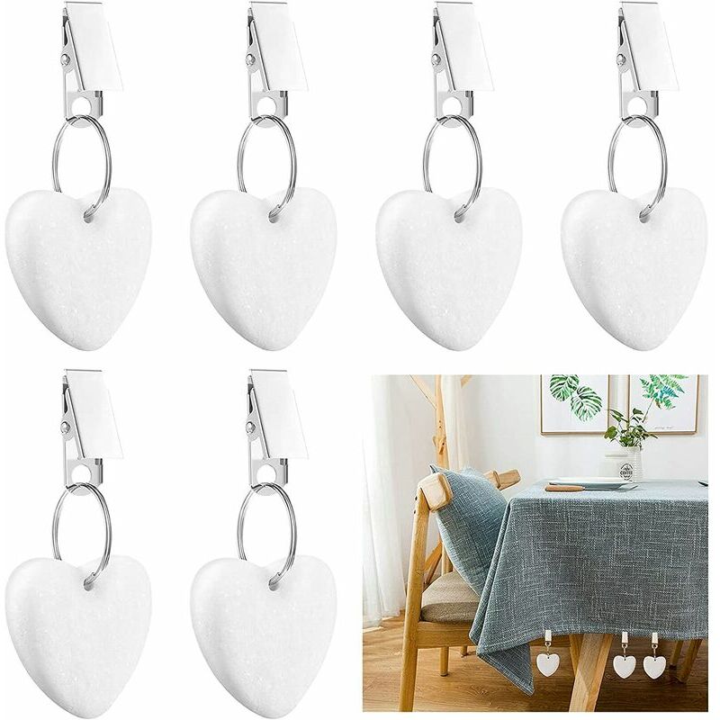 MATERIALI ECCELLENTI : Il nostro ciondolo per tovaglia a forma di cuore è realizzato con ciondoli a forma di cuore in marmo naturale di alta qualità e clip in acciaio inossidabile selezionate. La superficie del marmo è liscia e non presenta difetti. Le clip sono impermeabili e antiruggine, durevoli e possono adattarsi a diversi ambienti esterni. Tovaglia resistente: il peso del marmo del nostro ciondolo a forma di cuore è moderato, il che può impedire che la tovaglia venga spazzata via dal vento. . La clip in acciaio inossidabile ha una forte forza di morso. Non preoccuparti se il marmo cade troppo pesante. Qualunque sia l'occasione, la tovaglia si attaccherà al tavolo e non cadrà facilmente. Decorazione e praticità: il nostro ciondolo a forma di cuore in marmo è resistente ai disturbi e al movimento del vento e può mantenere piatto il piano del tavolo. condizioni ventose e il ciondolo è squisitamente progettato, che può svolgere il ruolo di una tovaglia decorativa. Facile da usare