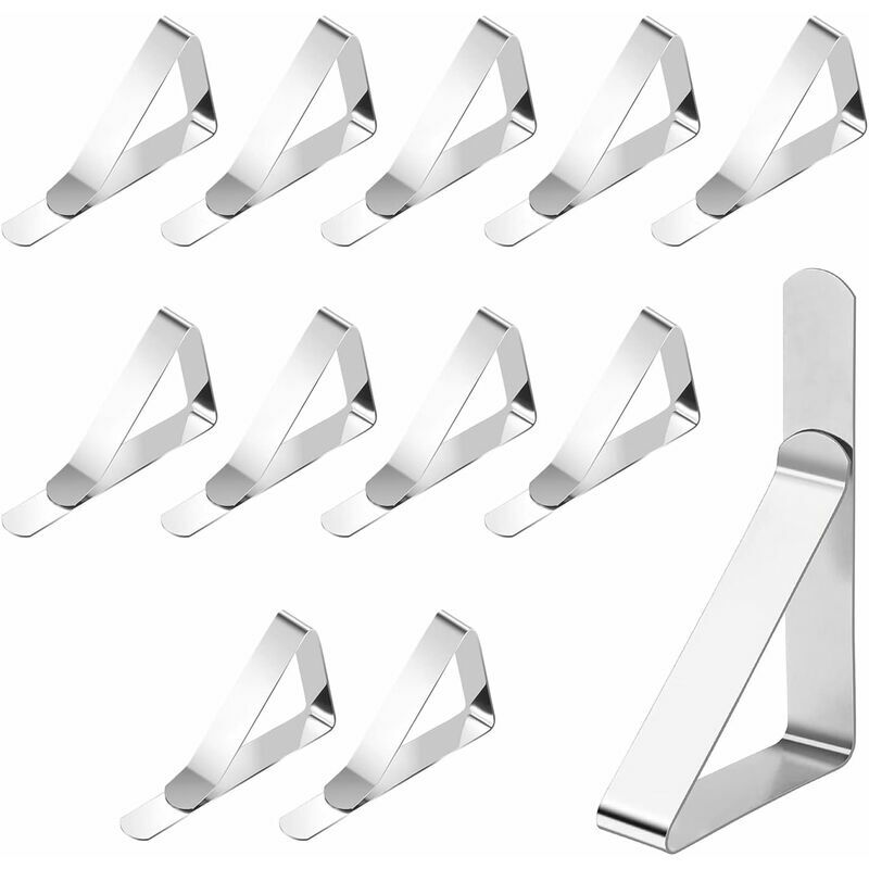 I materiali plastici aftermarket sono fragili e non durevoli come il metallo. La clip per tovaglia in acciaio inossidabile è resistente e adatta per un uso a lungo termine. Caratteristiche del prodotto: ● Materiale: acciaio inossidabile. Dimensioni del prodotto: 5,5 x 4,1 x 1,3 . ● Peso del prodotto: 13 g. Dimensioni della confezione: 15 x 10 x 4 . ● Peso della confezione: 193 g. Contenuto: 12 fermagli per tovaglia. ● 1 scatola di imballaggio.