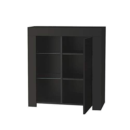 CLIPOP Credenza nera lucida a LED Armadietto con luci a LED Armadio con 2 ripiani in vetro, Vetrina per mobili da soggiorno