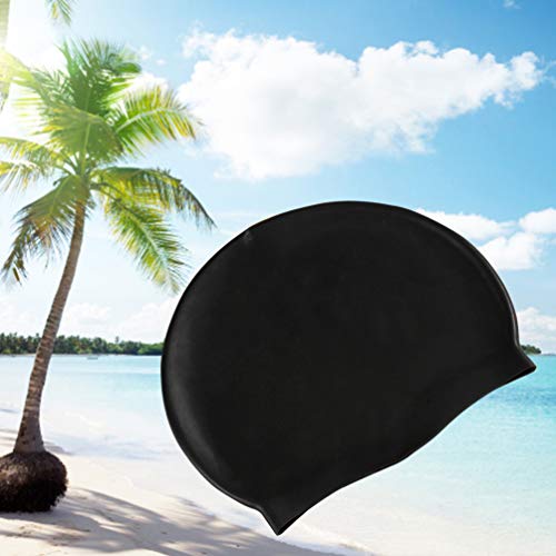 CLISPEED Cuffie da Nuoto in Silicone per Capelli Lunghi Cuffia a Cupola Impermeabile Cuffia Elastica Protezione per Le Orecchie Cuffia da Bagno Donna Uomo Nuoto Pratica Sport Cappello da Surf Nero