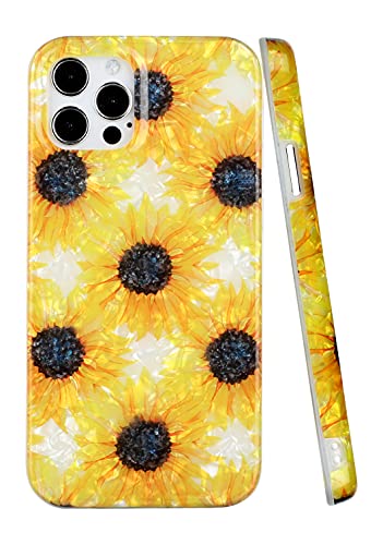CLM-Tech Cover Compatibile con Apple iPhone 12 PRO Max, Custodia in Silicone TPU Case, Girasole, Giallo Nero