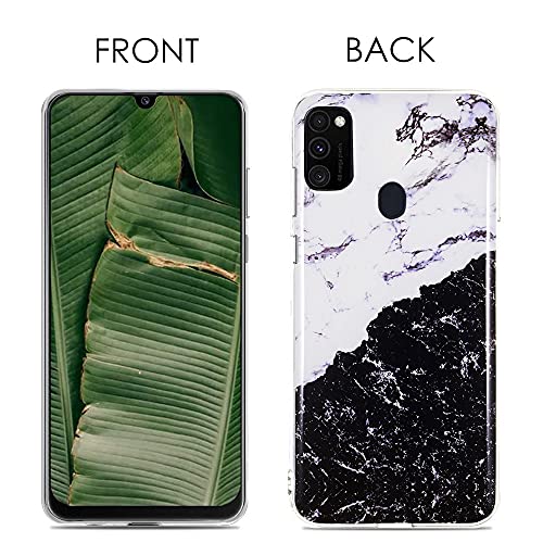 CLM-Tech Cover 3X Compatibile con Samsung Galaxy M21 / M30S, Custodia in Silicone TPU, Case 3in1 Set, Marmo Nero Bianco Oro