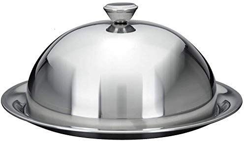 Cloche in acciaio INOX per cibo piastra piatto, con piatto da portata e coperchio bombato, Acciaio inossidabile, 30 cm