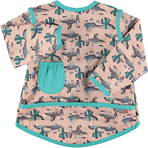 Close Pop-in - Bavaglino a maniche lunghe con tasca frontale da 6 a 18 mesi, lavabile in lavatrice a 40 gradi, stampa furetti Stage 3