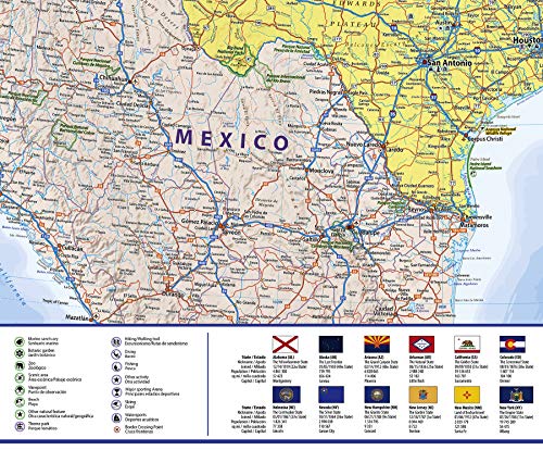 L'attrazione su qualsiasi parete, che sia in ufficio, in salotto, nello studio o come carta di apprendimento nella cameretta dei bambini. Pianifica le tue vacanze e scopri i i luoghi più emozionanti degli Stati Uniti. Scala 1:5.000.000