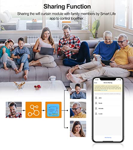 Dispositivo condiviso: questo interruttore intelligente può avere più siti di controllo condivisi da diversi membri della famiglia. Un telefono può anche controllare più interruttori. Imposta timer: puoi impostare un programma per aprire o chiudere la tenda.
