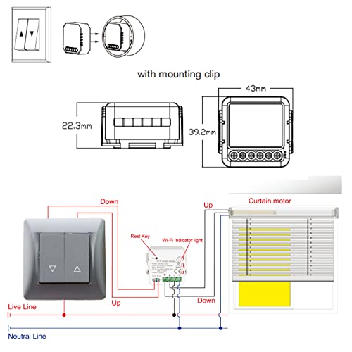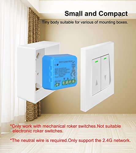 Controllo App e Controllo Vocale: modulo interruttore Wi-Fi per persiane avvolgibili funziona solo con l'app Smart Life fornita da Tuya Inc.(solo 2,4 GHz) . Ti consente di controllare in remoto la tua tapparella con una sola pressione sul telefono ovunque tu sia. Funziona con Alexa e Google Home, quindi puoi facilmente accendere/spegnere la tapparelle con il tuo comando vocale e creare scene su Alexa e Google Home