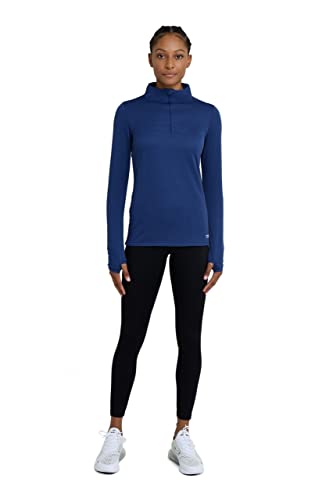 TCA Cloud Fleece 1/4 Zip Maglia Termica Sportivi da Donna a Manica Lunga da Corsa - Blu Scuro, S
