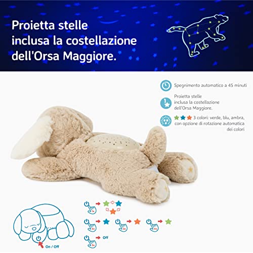 Cloud B Mini Luce Notturna Emolliente Proiettore Stelle | Luminosità Morbida | 3 Colori | 1 Costellazione | Spegnimento automatico | Luce notturna Peluche Cane Dream Buddies Patch The Puppy