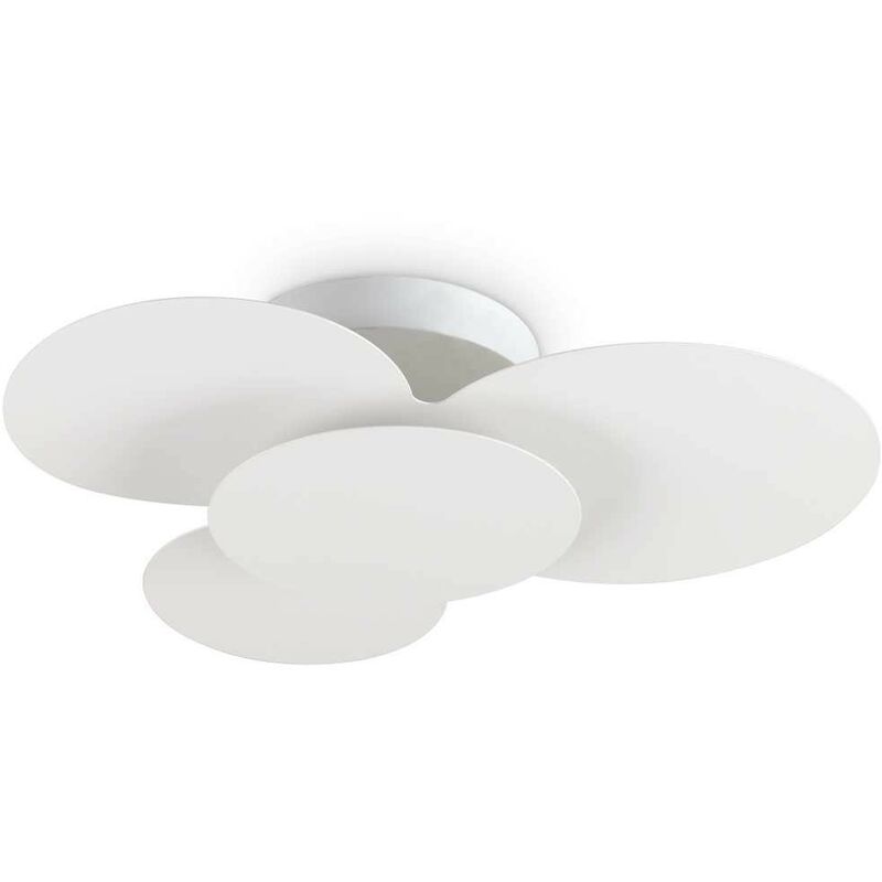 Montatura ed elementi decorativi in metallo rifinito con vernice opaca. Diffusori in acrilico opale. Emissione luce indiretta. Colore: bianco. L 520 x H 140 x P 460 mm LED 33W 17500 h 3000 K 2000 lumen IP:20