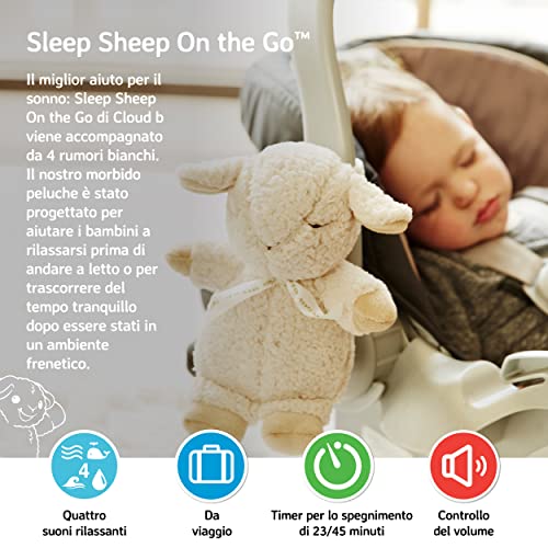 Cloud b Travel Soothing Sound Machine | Peluche coccoloso | 4 White Noise | Auto spegnimento | Travel Sleep Sheep on the Go
