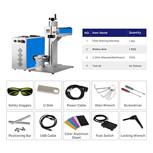 Macchina per marcatura in fibra: obiettivo 50W + F-Theta (area di marcatura): 200 * 200 mm. La gamma di frequenza di questa macchina per marcatura in fibra ottica è 50-100 kHz.