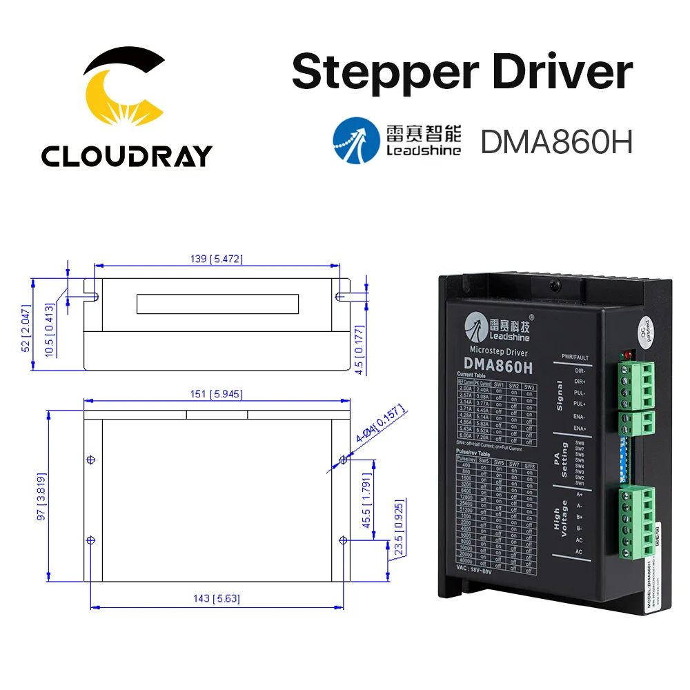 Cloudray Leadshine 2 Phase Stepper Driver DMA860H 18-80VAC 2.4-7.2A