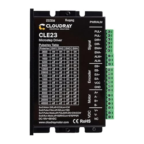 Risoluzioni Microstep Programmabile·Tensione di alimentazione fino a +50 VDC. Corrente di uscita programmabile (14 A-5,6 A). Frequenza di ingresso impulsiva fino a 200 KHz. Riduzione automatica della corrente inattiva. Supporta le modalità PUL/DIR e CW/CCW