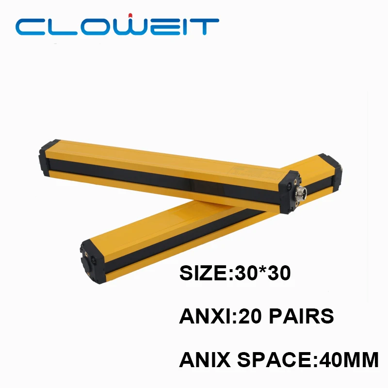 Cloweit APS-2040 Safety Light Curtain Sensor Switch 20 Beams 40mm Specing 30x30 Grating Security Device DC24V NPN PNP