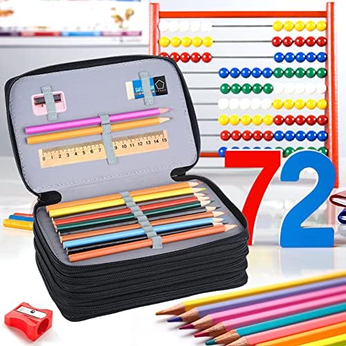 Grande capacità: La scatola di matite ha quattro strati, ogni strato ha due lati che possono contenere fino a 72 penne, e ha anche slot aggiuntivi per gomma, temperamatite e. Ogni penna ha il suo slot, in modo che i tuoi oggetti possano essere conservati in modo ordinato e ordinato.