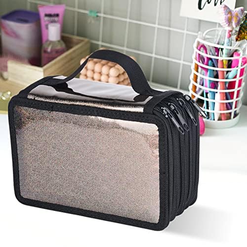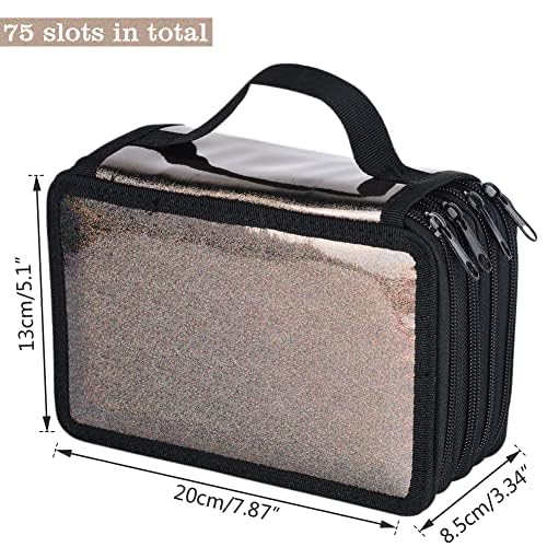 Materiale: Borsa lucida della penna in pelle PU, cerniera a quattro strati con 75 fori, elegante e alla moda, facile da pulire;