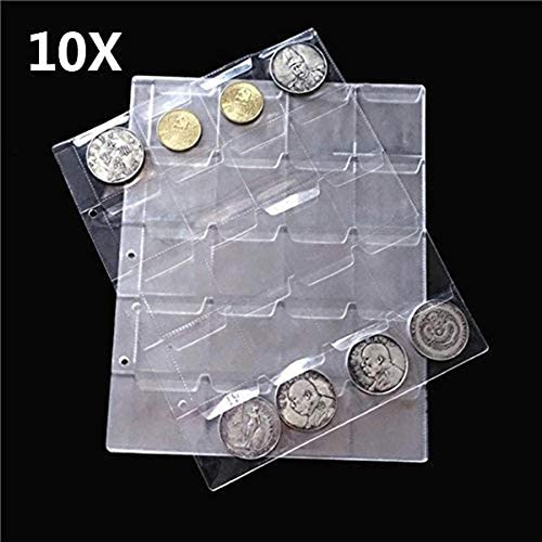 CLTYQ Titolare 10pcs Coin Album Raccolta Porta Monete Pagine di Album 20 Tasche 40mm Classic Pagine Perforato