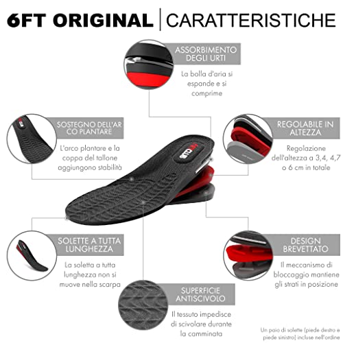☑️ AUMENTA FACILMENTE IN ALTEZZA // Diventa più alto in pochi secondi. Taglia le solette a misura (se necessario), allenta i lacci delle scarpe, fai scivolare il piede e aggiungi/rimuovi strati per adattarli. Mettiti subito in piedi 1,35 pollici (3,4 cm), 1,85 pollici (4,7 cm) o 2,35 pollici (6 cm) più alti come desiderato. Completamente non rilevabile nelle scarpe di supporto alla caviglia alta consigliate;