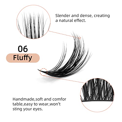 Cluster di ciglia DIY Extension 72 pezzi D Curl 10mm - Fluffy Ciglia a ciuffetti con stelo sottile - Ciglia individuali - Soddisfa i desideri delle ciglia - Riutilizzabili (Fluffy D Curl 10mm)