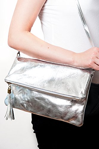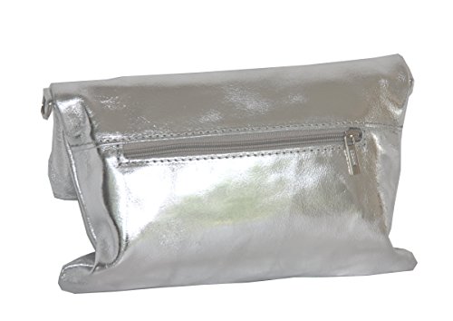 Clutch,Borse a spalla (28/19 / 4 cm) in pelle, Argento, Mod. 2059 by Fashion-Formel