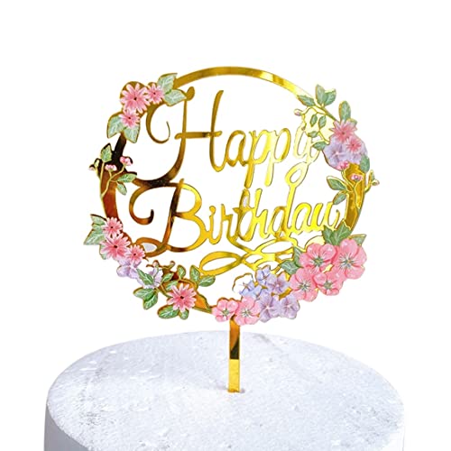 Clyhon 1Pcs Fiori Happy Birthday Cake Topper, Acrilico Topper per Torta Compleanno, Decorazione per Torte di Compleanno per bambine, matrimoni, madri, Feste Glitter Party Decorations