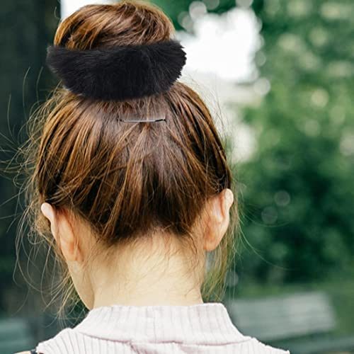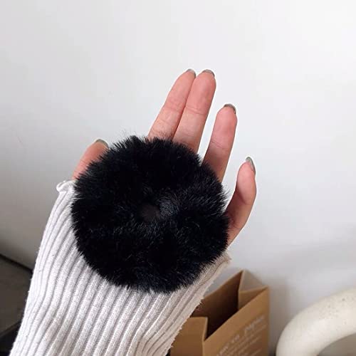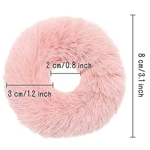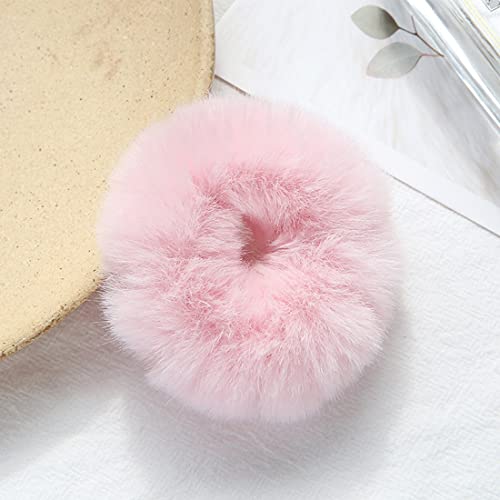 Clyhon 4 Pezzi Elastici per Capelli in Peluche di Pelliccia di Coniglio, Elastici Soffici per Capelli Elastici per Capelli a Coda di Cavallo Accessori per Capelli,Fascia per Capelli(Rosa Chiaro/Nero)