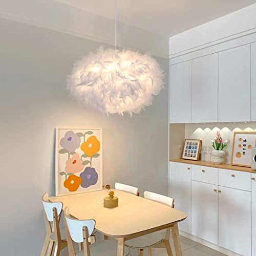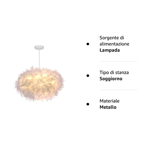 45 cm/17.8 "Ellissoide Bianco Piuma Pendent Luce Piuma Paralume Plafoniera Lampadario di Piume per Soggiorno, Camera Da Letto, Sala da pranzo