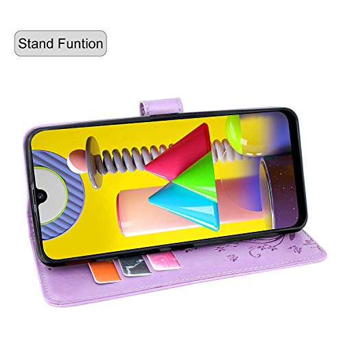 CMID Cover Galaxy M31, PU Cuoio Portafoglio Custodia Libro Antiurto in Piedi Protettiva [Carta Credito][Cinturino da Polso] Case Cover per Samsung Galaxy M31 (Viola)