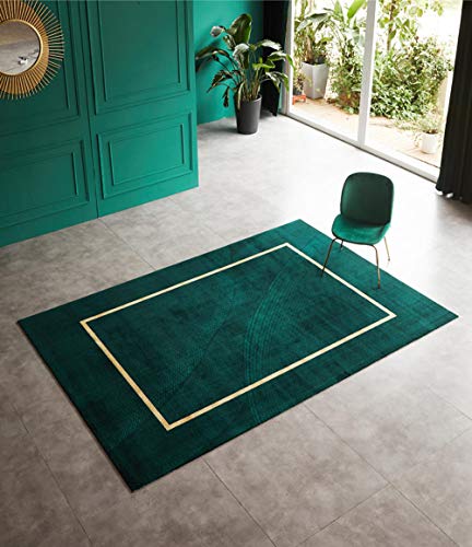 CMwardrobe Tappeto Moderno Salotto Camera da Letto Sala da Pranzo Area Rugs Rettangolo Geometrico Oro Verde Scuro Tappeti Extra Large Medium Home Morbida Carpets 1.4×2M