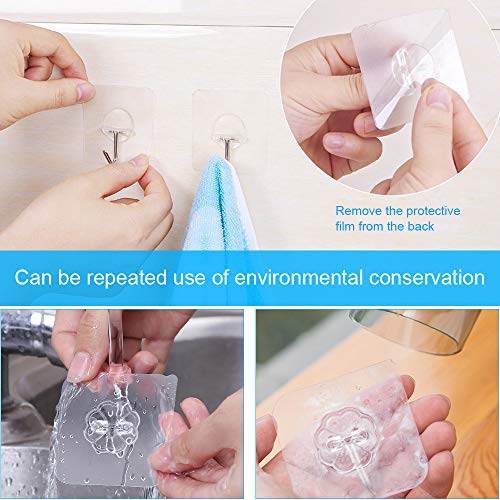 I ganci adesivi sono ganci trasparenti per il bagno o la cucina per appendere asciugamani o altro. Eccellente si attacca anche alla carta da parati a trucioli di legno e al cemento. Hanno alcuni ganci nell'armadio della cintura, ecc. Poco appariscenti ma fermi