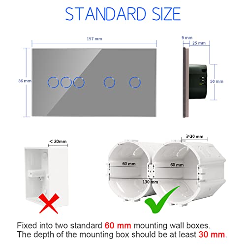 CNBINGO Interruttore della luce doppio WiFi/WLAN, interruttore smart touch per lavorare con Alexa/Google Home, vetro grigio, 2 scomparti più 1 scomparto, 157 x 86 mm, filo neutro necessario