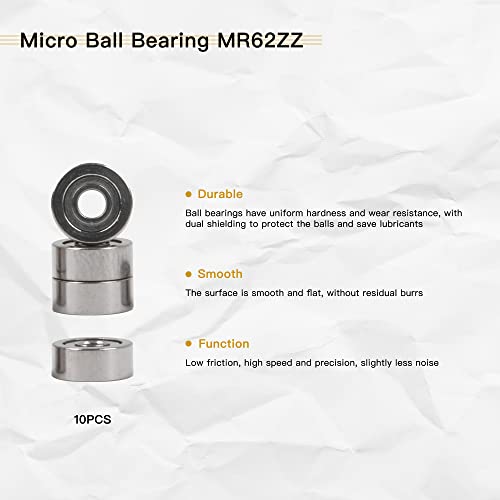 CNBTR 2 x 6 x 2,5 mm cuscinetti a sfera in acciaio mini scanalatura, ruote scorrevoli fai da te, MR62ZZ, confezione da 10