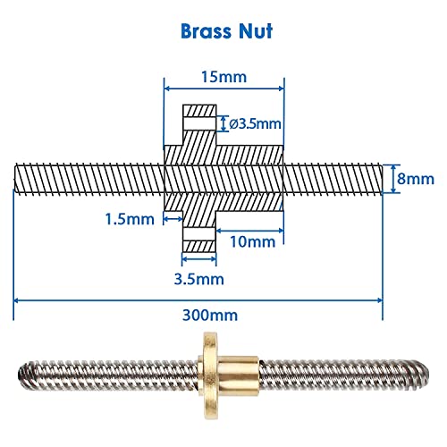 Cnloyua 2pcs 300mm T8 in Acciaio Inox Filettato Rod Piombo + T8 Dado, per Macchina Stampante 3D ASSE Z, Vite Guida Stampante 3D, Sostituzione per Ender 3 / Ender 3 PRO/Ender 5 / Ender 5 Plus
