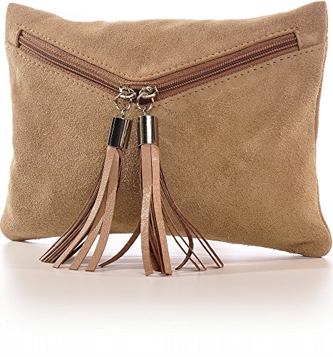 CNTMP, Borsa da Donna, Clutch, Pochette, Borsetta da Sera, In Pelle Scamosciata, Con Tasca in Pelle, 23 x 16,5 x 1 cm, Colore:Beige