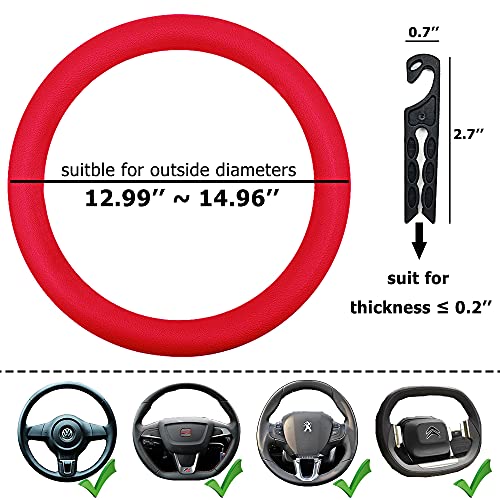 CNYMANY Diretto Nero Silicone Coprivolante per Auto 13"-15" (33-38cm), con 4 pezzi Gancio di Sfiato dell'aria - Rosso