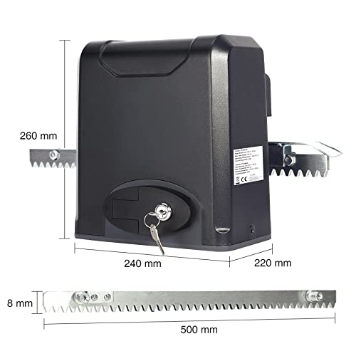 CO-Z 200W Motore Cancello Scorrevole Kit Automazione Cancello Scorrevole per Cancello Fino a 600kg 12 m con 2 Telecomandi, Cremagliera 8x0.5M e Sensori a Infrarossi per Giardino Garage