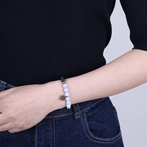 COAI Bracciale Bilanciamento Reiki in Tormalina Nera e Agata Azzurra Venata e Medaglietta Amuleto Fiore di Loto Oro