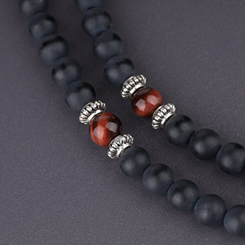 COAI Bracciale Collana 108 Perle Mala in Onice Opaca e Occhio di Tigre Rosso con Inserto Testa del Buddha, Bracciale Rosario da Preghiera in Pietre Naturali