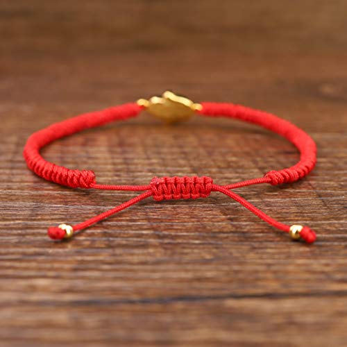 COAI Bracciale da Donna in Corda Rossa Tessuta a Mano e Amuleto Mano di Fatima in Queen Conch
