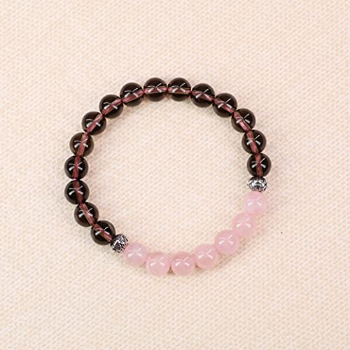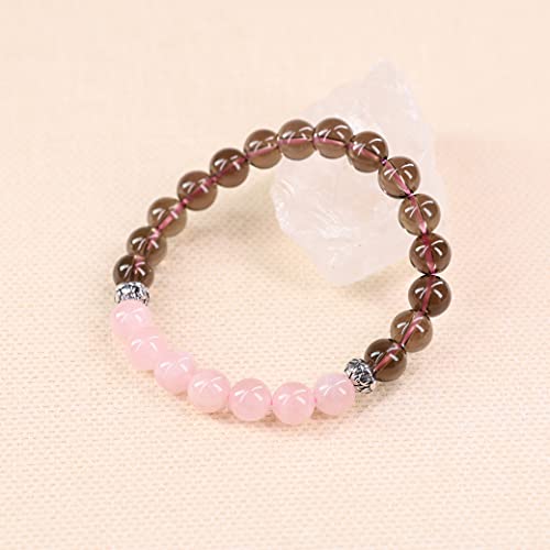 COAI Bracciale da Donna in Perle Mala con Pietre in Quarzo Rosa e Quarzo Fume'