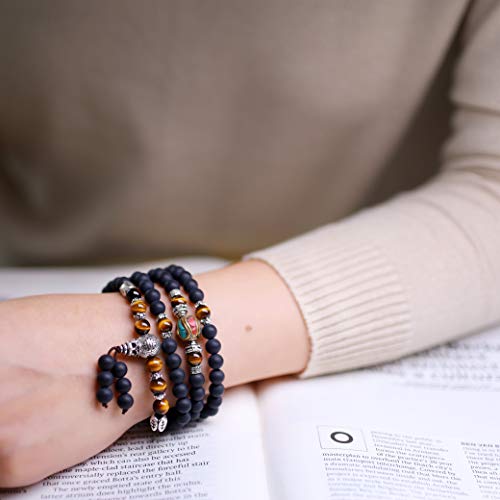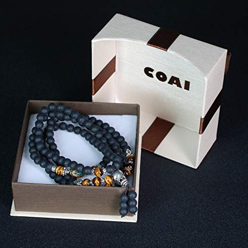 COAI Bracciale con 108 Perle Mala in Onice Opaca e Occhio di Tigre Marrone, Bracciale Rosario Buddhista