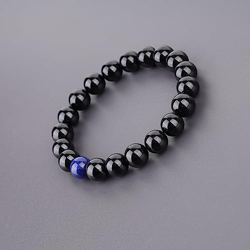 COAI Bracciale in Tormalina Nera e Lapislazzuli, Bracciale Energetico in Pietre Semi-preziose