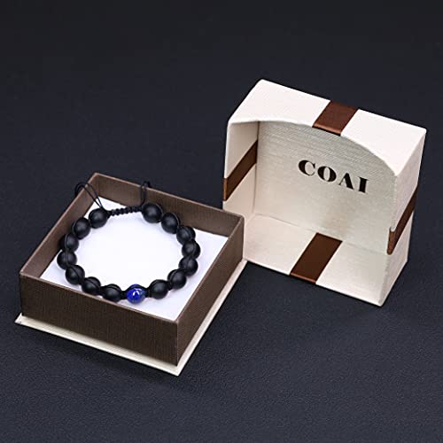 COAI Bracciale da Uomo Regolabile con Perle in Onice Opaca e Lapislazzuli Annodate