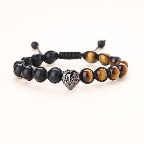 Materiale: bracciale di perle di onice opaco e occhio di tigre marrone 8mm, amuleto testa di leone in lega di rame 12*11*9mm