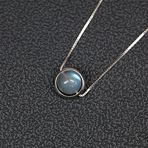 Materiale e Taglia: catena in argento placcato platino 40 cm, ciondolo in circolare con struttura in rame placcato platino e pietra labradorite 8mm