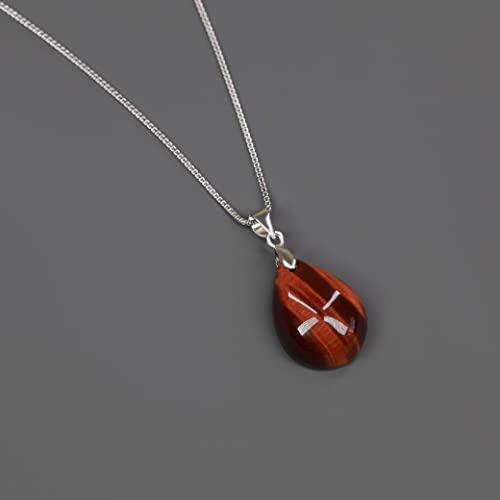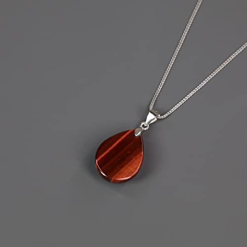 Collana fine e delicata da donna con ciondolo goccia in occhio di tigre rosso. Occhio di tigre aumenta l'autostima
