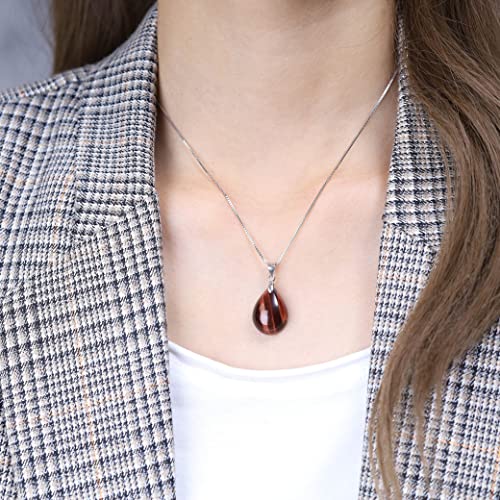 COAI Collana da Donna in Argento Sterling 925 con Ciondolo Goccia in Occhio di Tigre Rosso