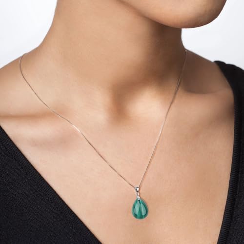 Pendente: lacrima/goccia 20*15*7mm in malachite naturale. Attenzione: la malachite è sensibile all'acqua, si prega di togliere la collana durante la doccia, al mare o in piscina
