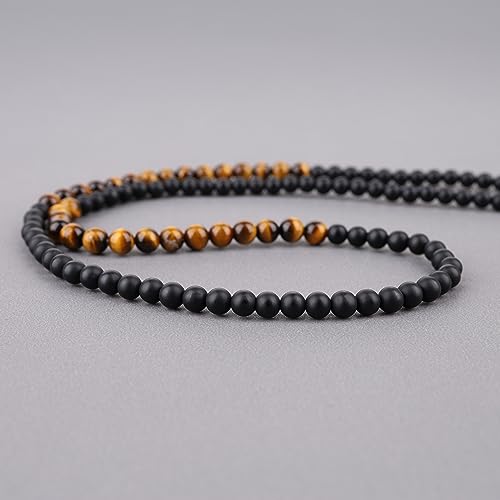 COAI Collana Unisex con Perle in Onice Opaco e Occhio di Tigre